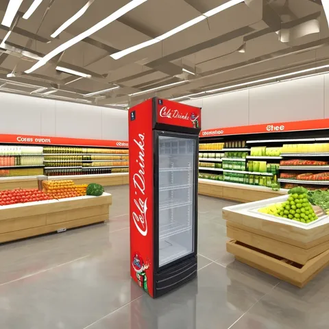 Vitrina de bebidas, puerta de vidrio refrigerada, supermercado, restaurante, tienda de conveniencia